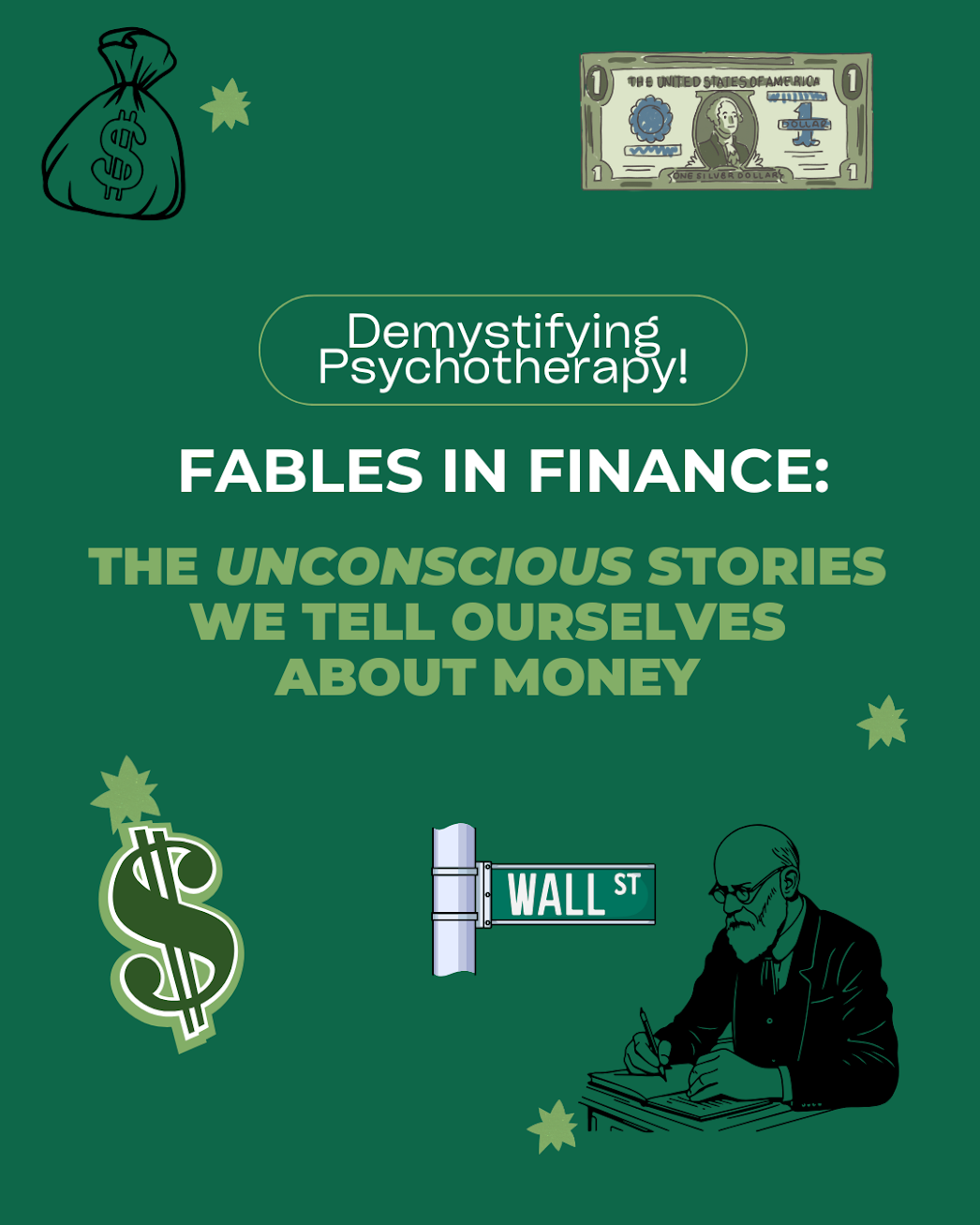 On Giving Tuesday, December 2nd, we’ll debut a new series in our Demystifying Psychotherapy! podcast, titled “Fables in Finance: The Unconscious Stories We Tell Ourselves About Money.”